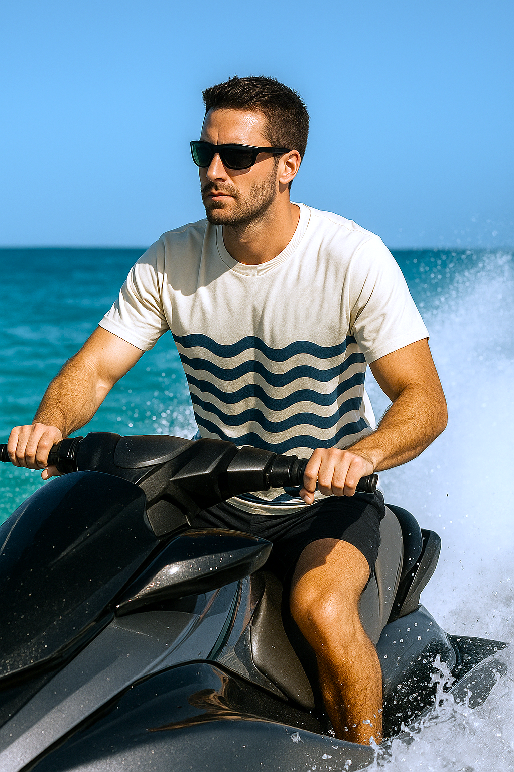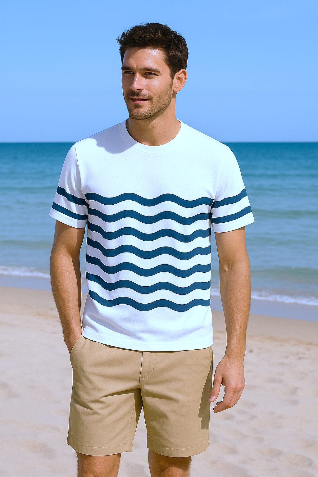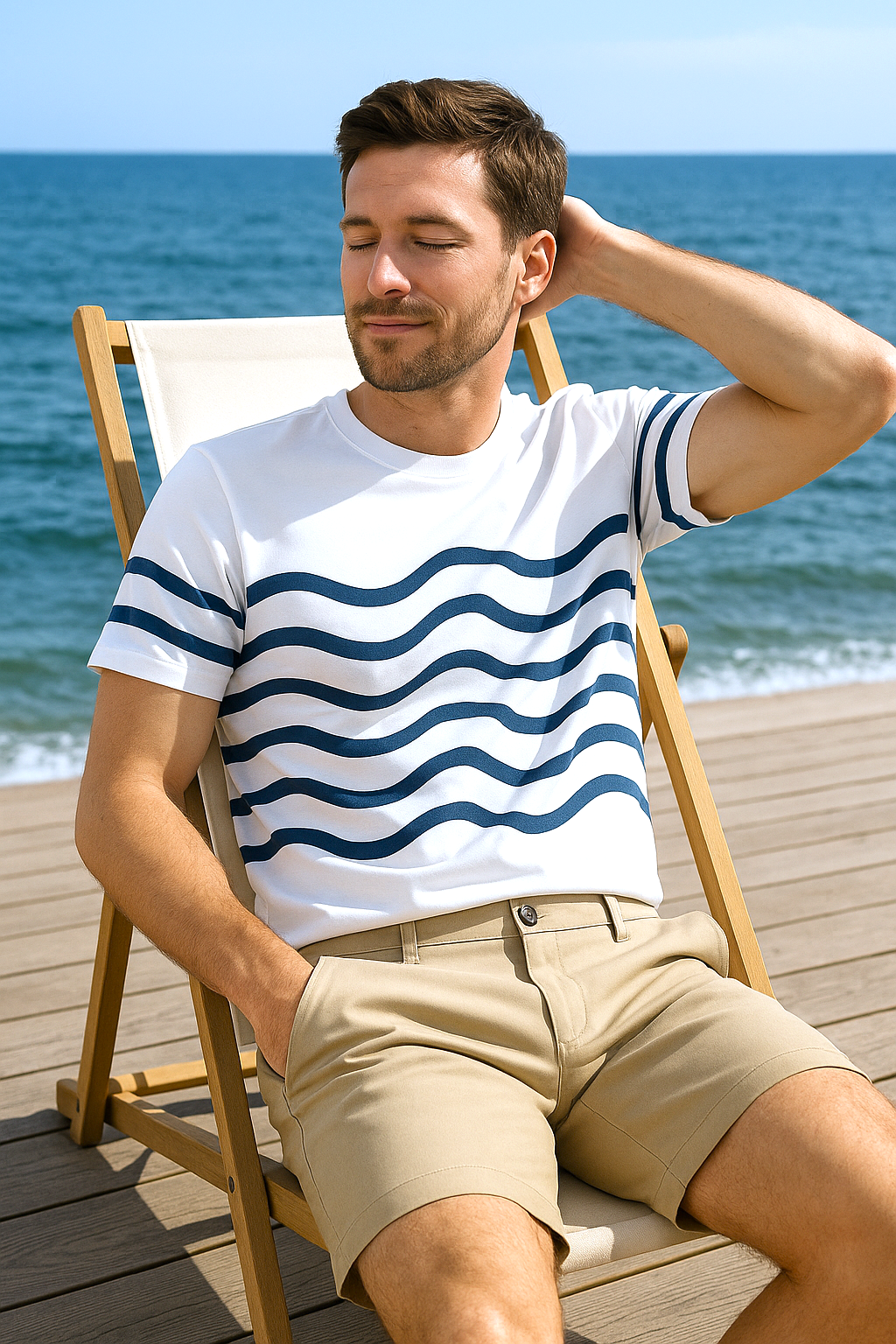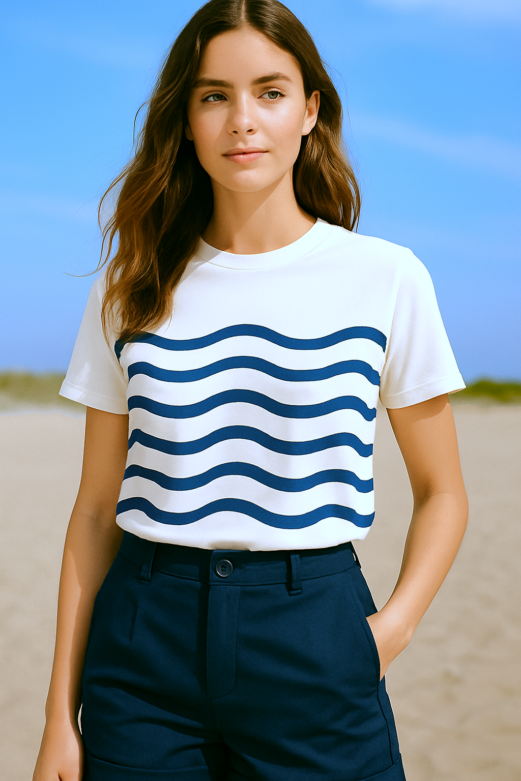 Nous créons des marinières modernes, épurées et confortables, conçues pour accompagner aussi bien les balades côtières que la vie à bord. Notre collection se distingue par un motif à lignes ondulées, décliné en deux modèles exclusifs -